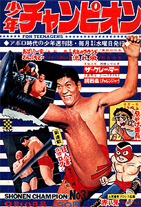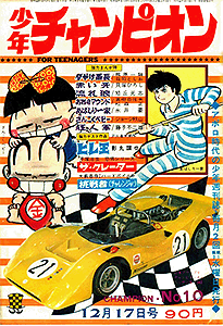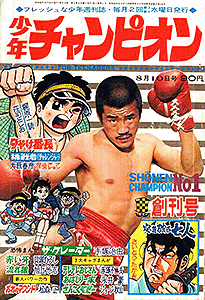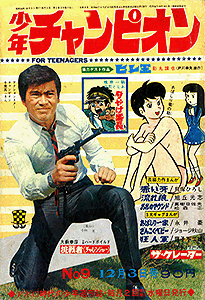 一番後発の少年チャンピオンですが、当初はタイトル通り「チャンピオン」に的を絞って、格闘技系に力を入れようとしていたよう。14号から週刊となり、同時に、後に同誌を代表する水島新司も連載を開始。価格は90円。