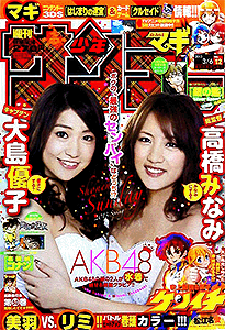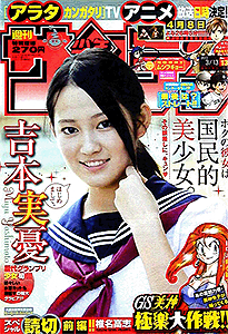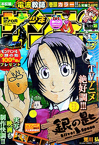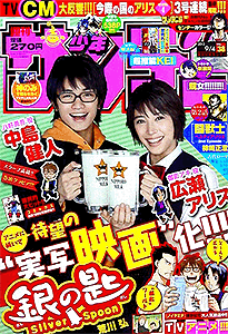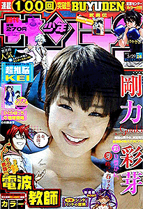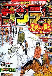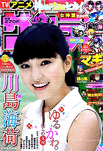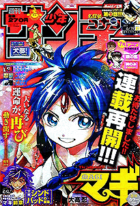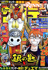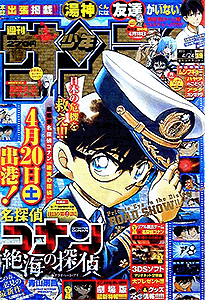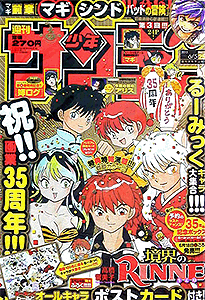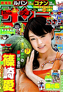 少年サンデー 2013年 1号2・3号4・5号6号7号8号9号10号11号12号13号14号15号16号17号18号19号20号21・22号23号24号25号26号27号28号29号30号31号32号33号34号35号36・37号38号39号40号41号42号43号44号45号46号47号48号49号50号51号52号←2012年 2014年→ 33号では特別定価200円で売り出している。そのあとの34号でも同じポーズで全キャラ出演している。25号では高橋留美子大先生の35周年をお祝い。確かに1つの雑誌で、作品を変えながらもずっと連載している作家は数少ない。最多表紙作品は、6回で『銀の匙』。 データ
